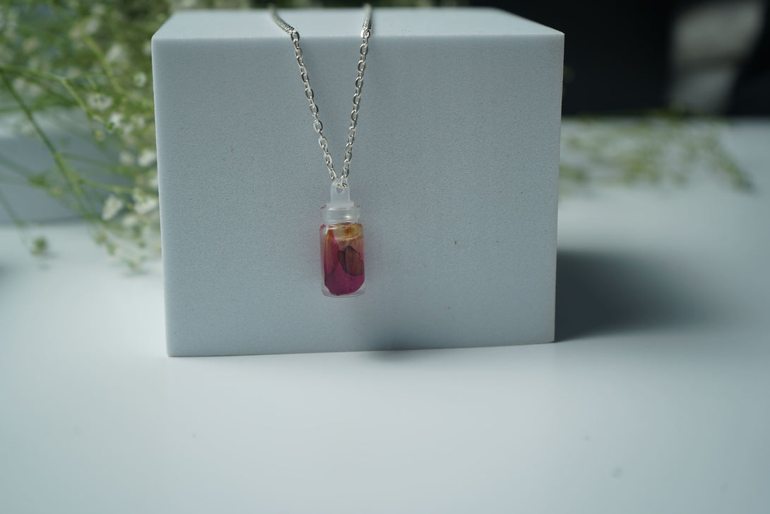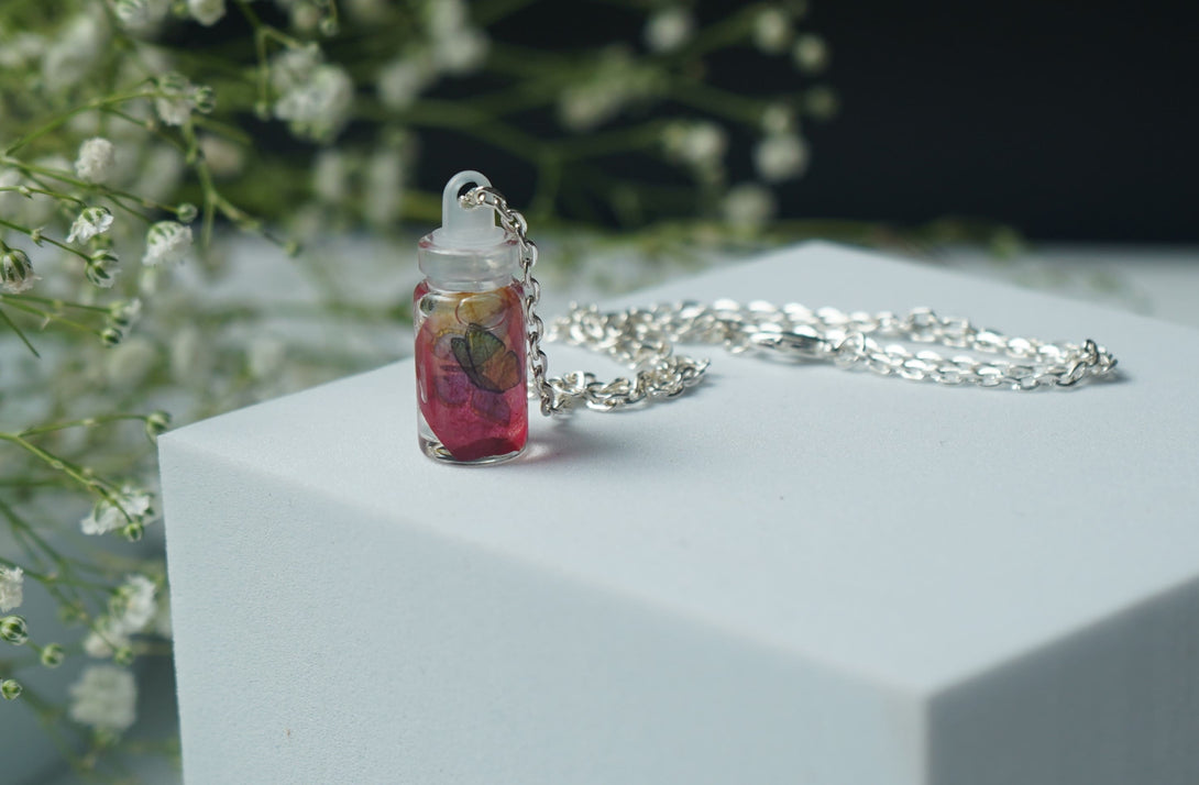 Handcrafted with precision, the Butterfly and Rose Petal in Small Bottle Pendant is more than just jewelry—it’s a miniature tribute to nature’s wonders. Whether as a thoughtful gift or a cherished personal piece, this pendant is sure to become a treasured favorite.