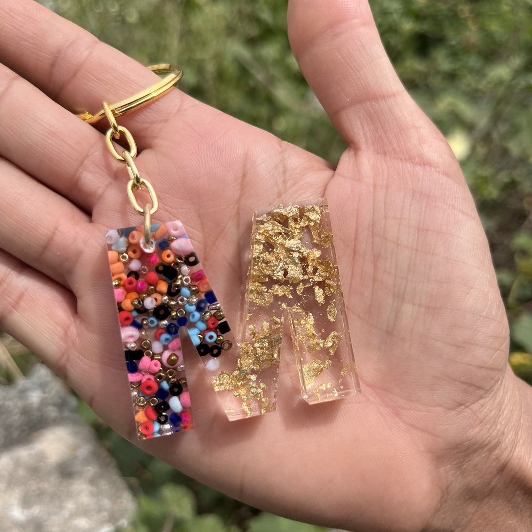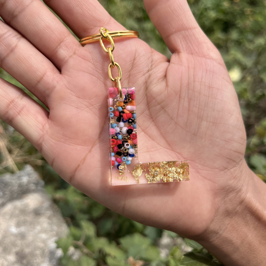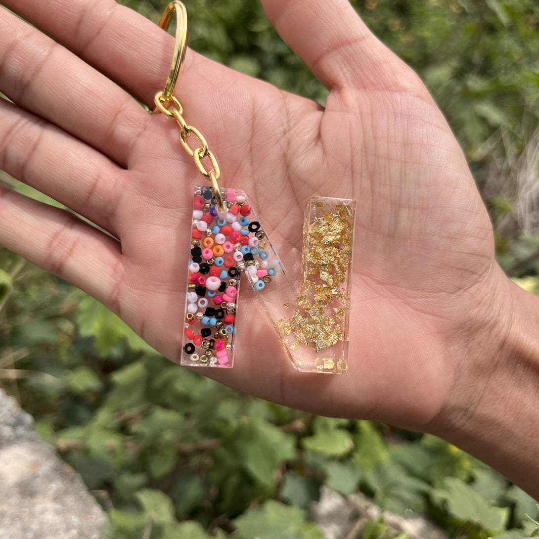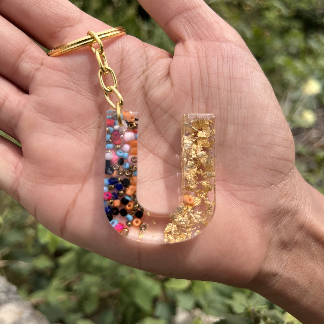 Design:- Handmade Pearl Pattern Initial keychain with Real sand put it into Keychain for the ocean feel. Item Dimensions: 4cm x 4cm x 1cm, Dimensions might differ for different Letters Material: Resin - A Resin Is A Durable Stone. It Don’t Break Or Stain So You Won't Need To Provide Regular Maintenance As You Would Do With Stone Or Metal. Package Includes: 1 Keychain - The Artisan Uses All Their Abilities To Create Items That Celebrate Their Craftsmanship. Beautiful and Elegant Design that is scarce in market, we bring it to you <3.