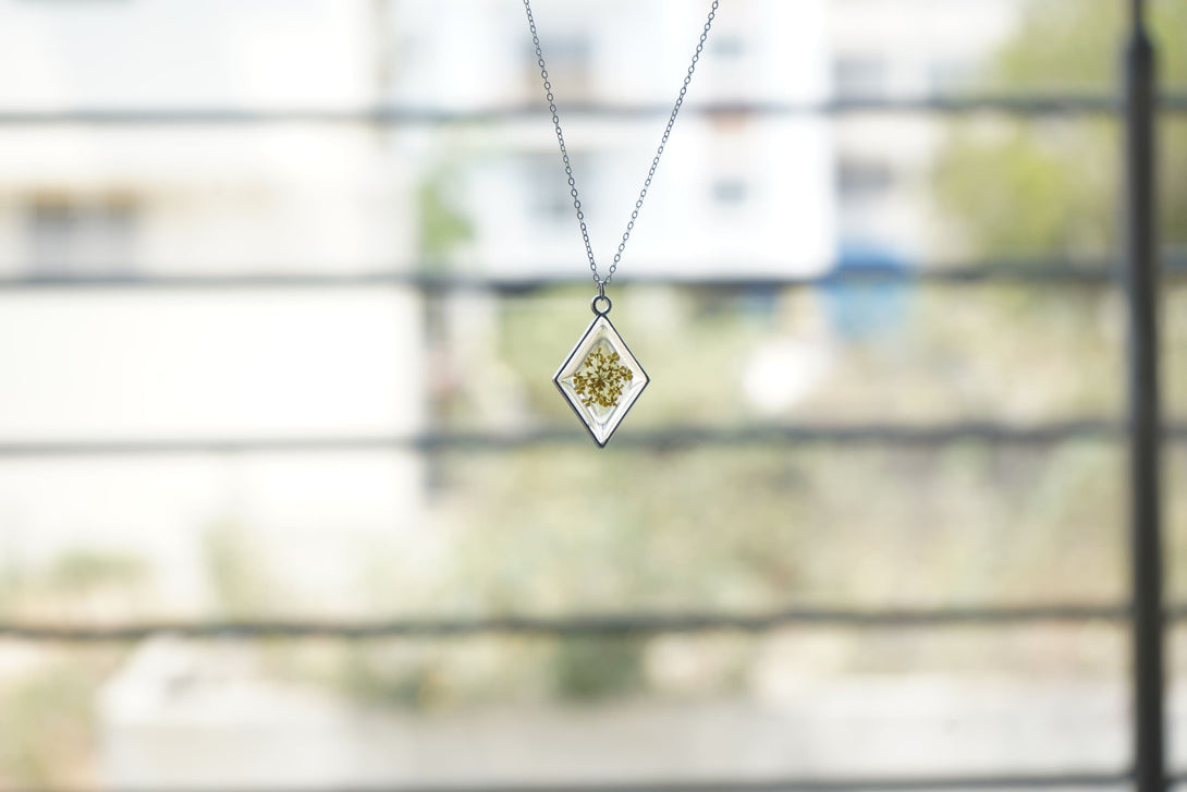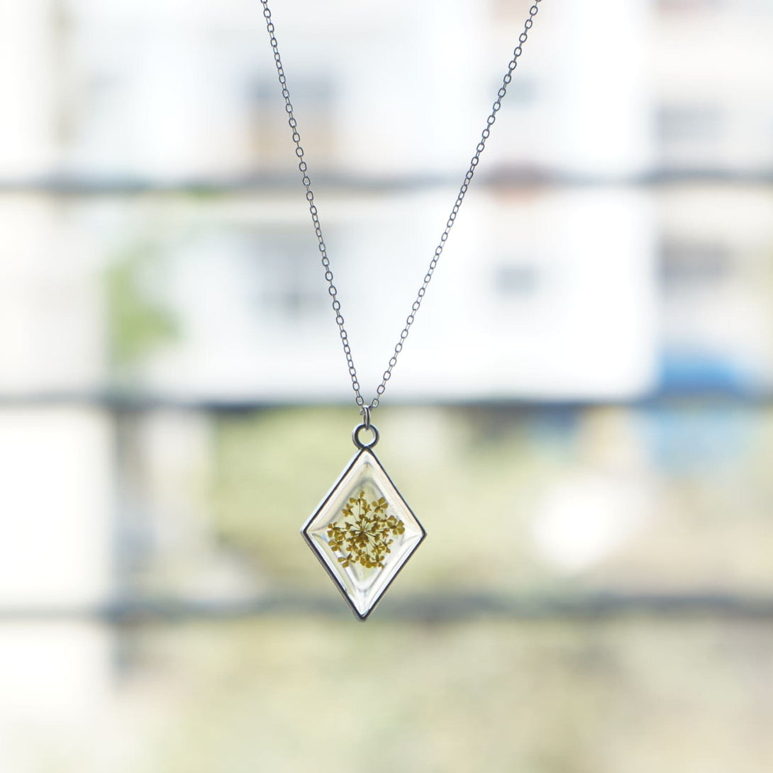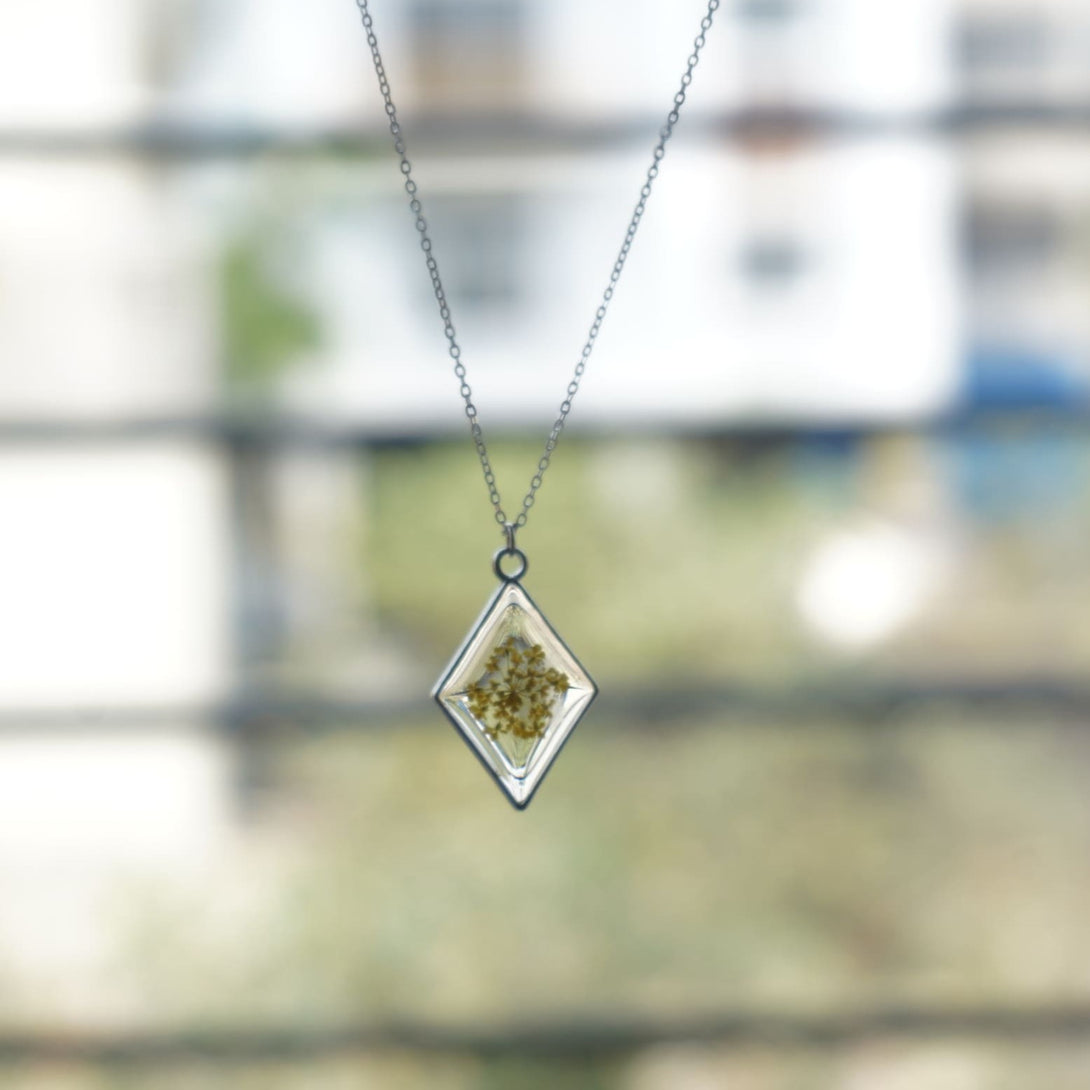 Dried Yellow Annes with Rhombus Shape Resin Pendant