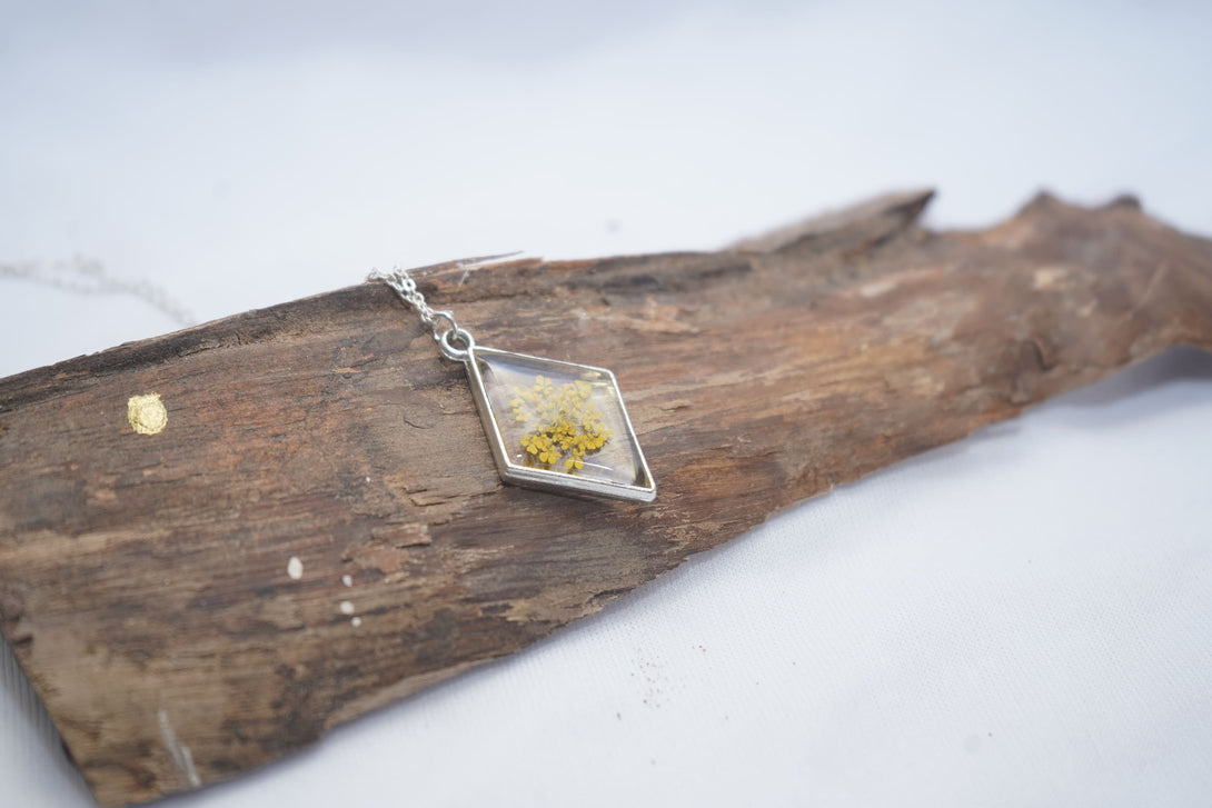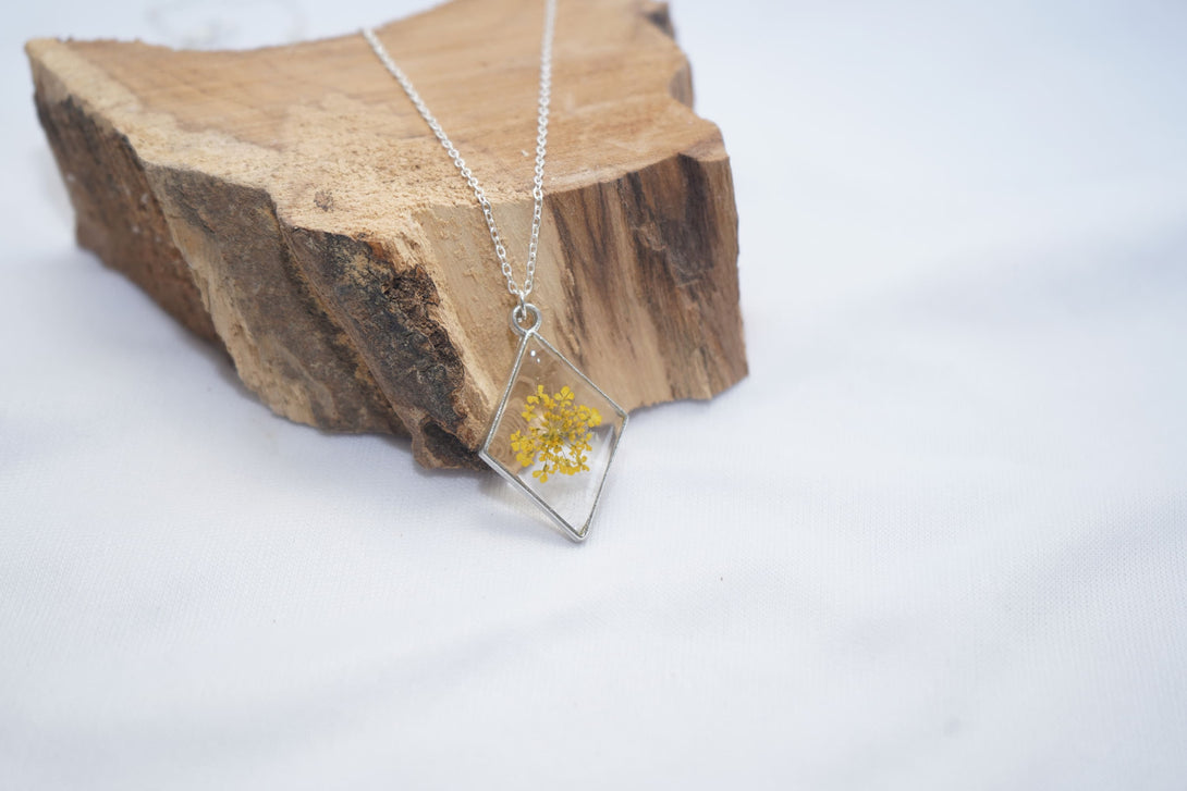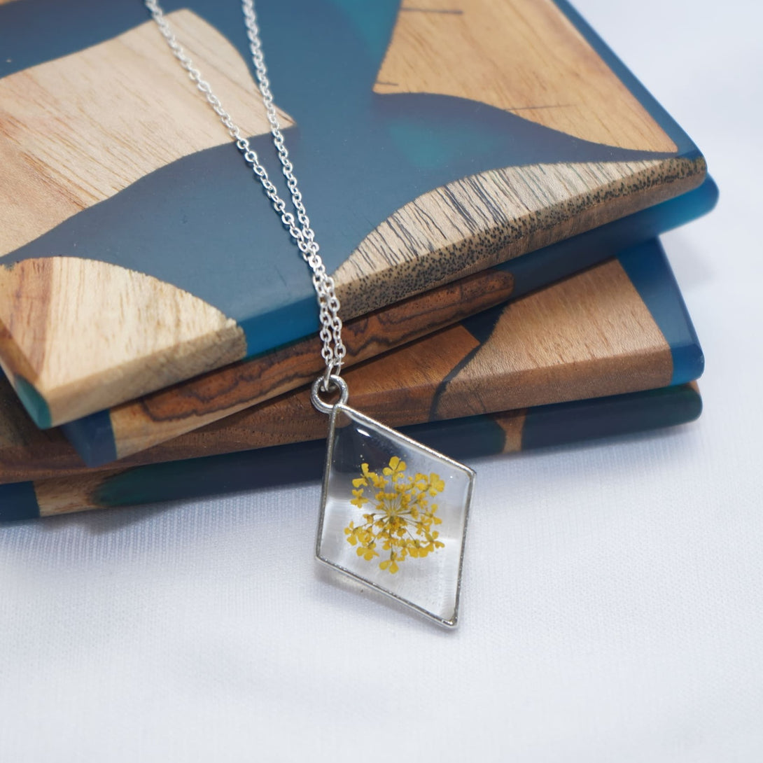 Introducing our exquisite Resin Flower Necklace, a stunning piece of jewelry that effortlessly combines elegance with natural beauty. Handcrafted with meticulous attention to detail, this necklace is sure to capture the hearts of anyone who adores unique accessories. Each flower is meticulously crafted, capturing the intricate details of petals and leaves, making it a true work of art. The pendant's resin material offers a lightweight and comfortable wearing experience, ensuring that you can flaunt this necklace all day long without any discomfort. The adjustable chain allows for a customizable fit, making it suitable for various neck sizes and preferences. This Resin Flower Necklace is perfect for any occasion, whether it's a casual outing, a formal event, or a romantic dinner. It adds a touch of femininity and sophistication to any outfit, be it a simple dress or an elegant evening gown. It also serves as a thoughtful gift for loved ones, expressing your admiration and appreciation for their unique style and personality. When you choose our Resin Flower Necklace, you can trust that you're receiving a high-quality piece of jewelry. We pride ourselves on using premium materials and employing skilled artisans to ensure that each necklace meets our rigorous standards of craftsmanship and durability. Enhance your jewelry collection with the timeless beauty of our Resin Flower Necklace. Explore the exquisite craftsmanship and artistry that makes this necklace a true statement piece. Add a touch of natural elegance to your ensemble and let the vibrant colors and delicate design capture the attention and admiration of all those around you.