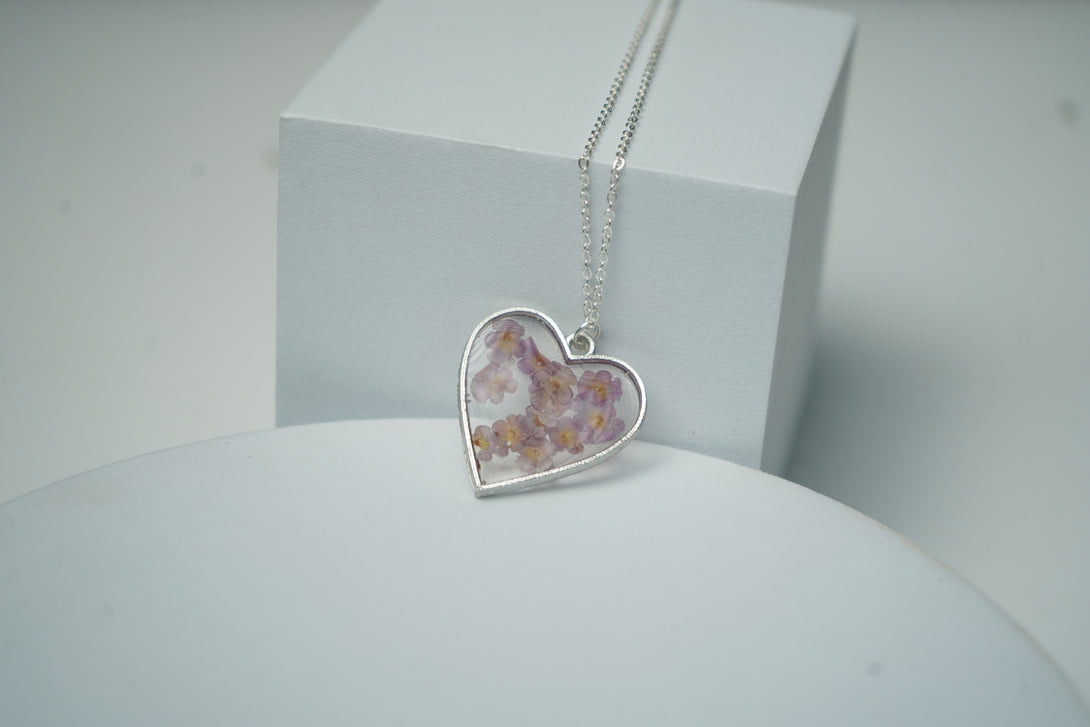 Celebrate the beauty of simplicity with this delightful Small Cute Flower Pendant in a silver heart frame, perfect for expressing love and adding a touch of elegance to your style.