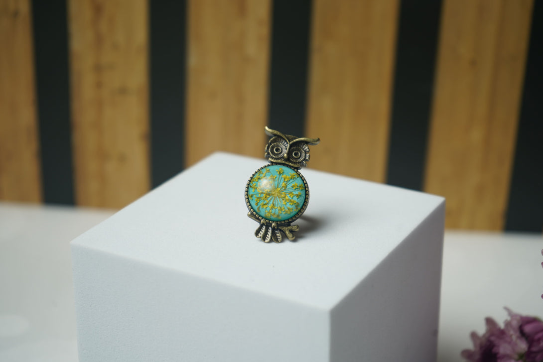 Whether you’re dressing up for a special occasion or adding a fun, colorful accent to your everyday look, the Yellow Real Annes Flower with Teal Green Owl Resin Ring is the perfect choice. Its imaginative design makes it suitable for all occasions, from casual outings to festive events. It also makes a thoughtful gift for those who love nature, playful designs, or unique jewelry.