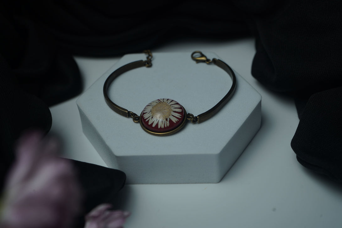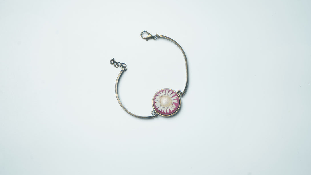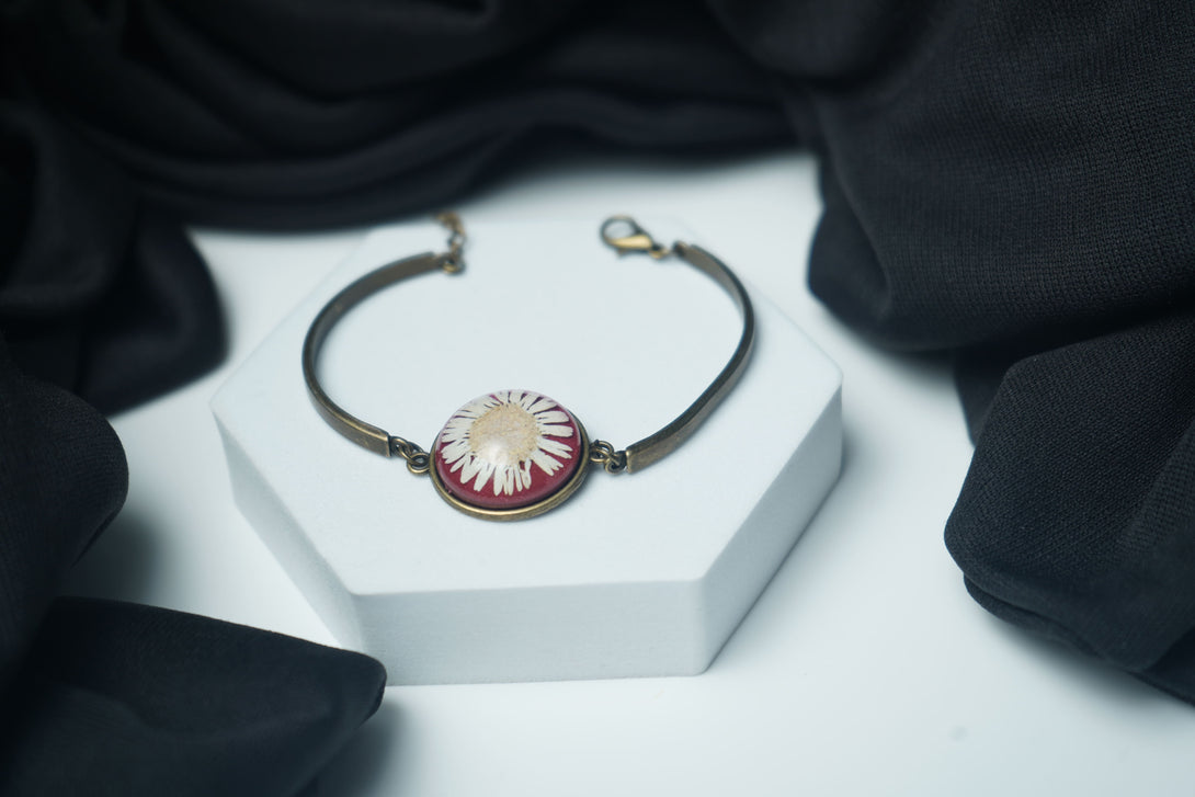 - Handcrafted bracelet featuring real flowers preserved in clear resin.