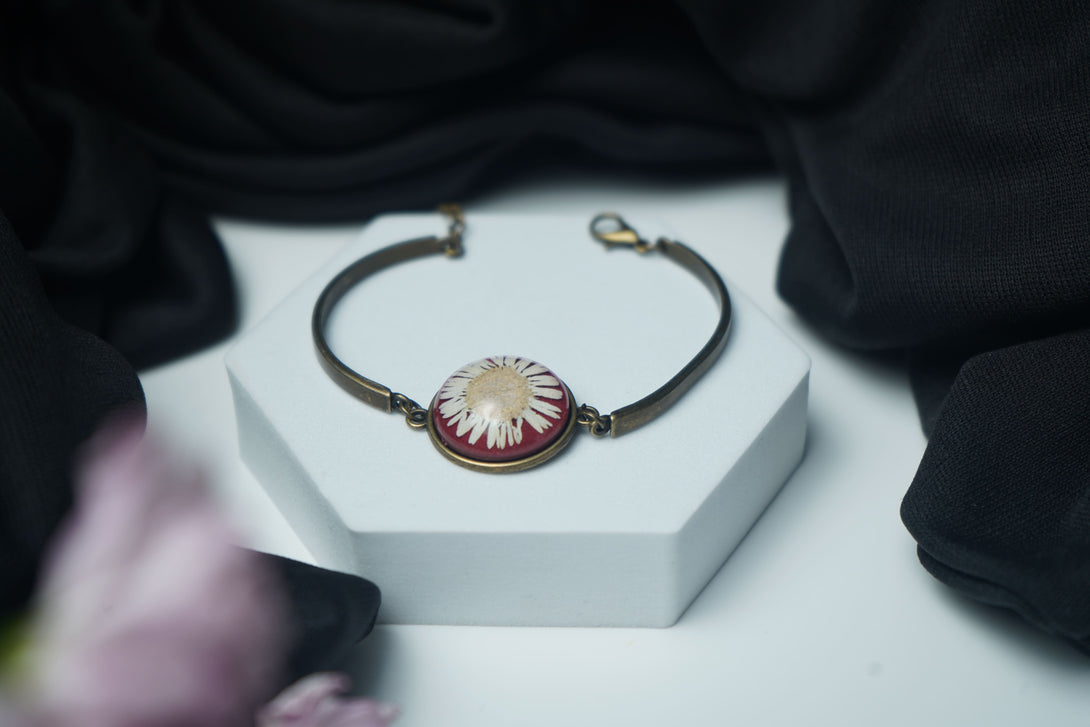 Embrace timeless beauty with our White Daisy Flower Bracelet, a charming piece that captures the delicate elegance of nature. Featuring real daisy flowers preserved in pristine white resin, this bracelet is a testament to both craftsmanship and natural beauty.
