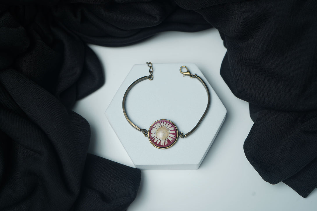 Crafted with care, each bracelet showcases the intricate details of the daisy flower, ensuring a unique piece that radiates elegance and simplicity. Whether as a personal indulgence or a thoughtful gift, the White Daisy Flower Bracelet is sure to be cherished.
