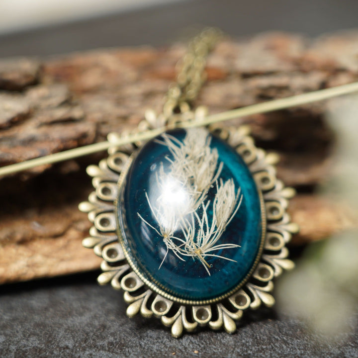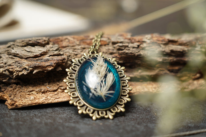 UniQ Creation Preseved floral resin Necklace for the gift, Ladies, All Flower resin Necklace with Real Leaf- Design 1