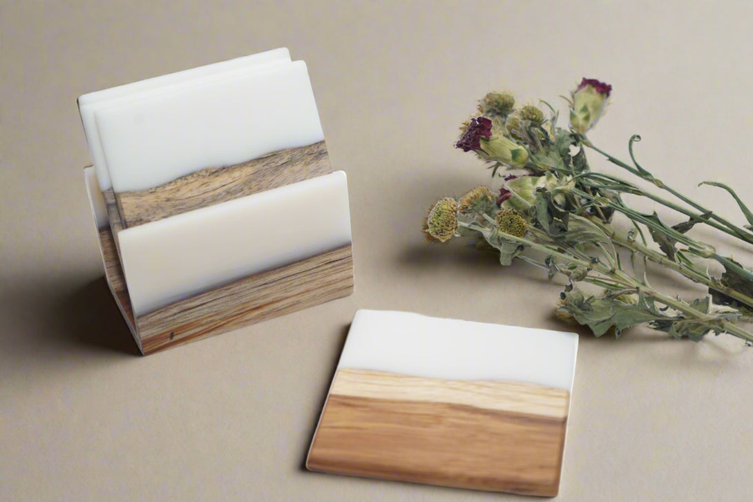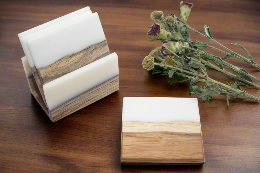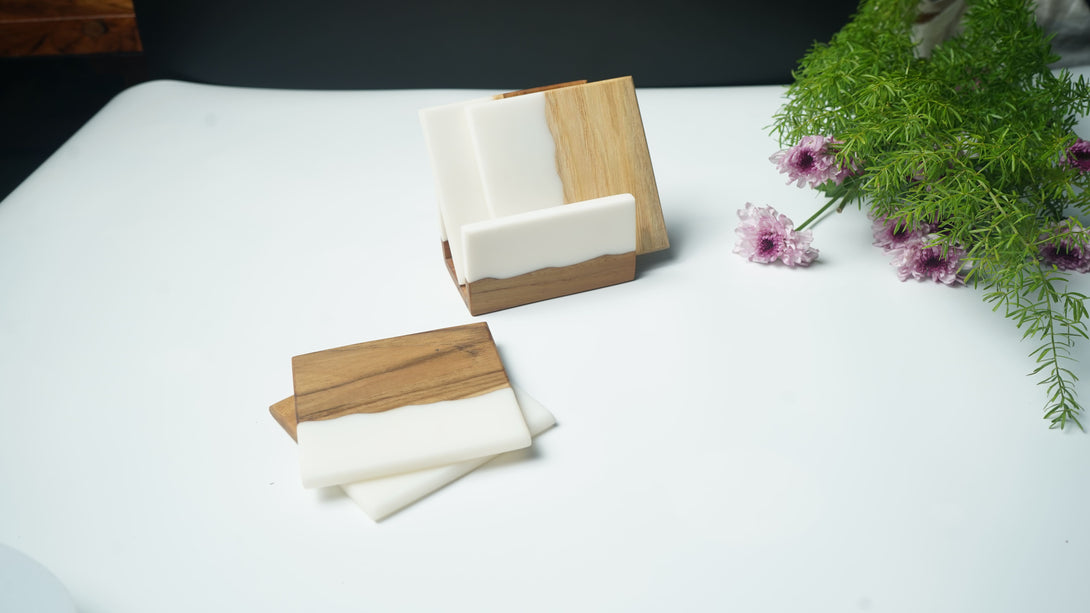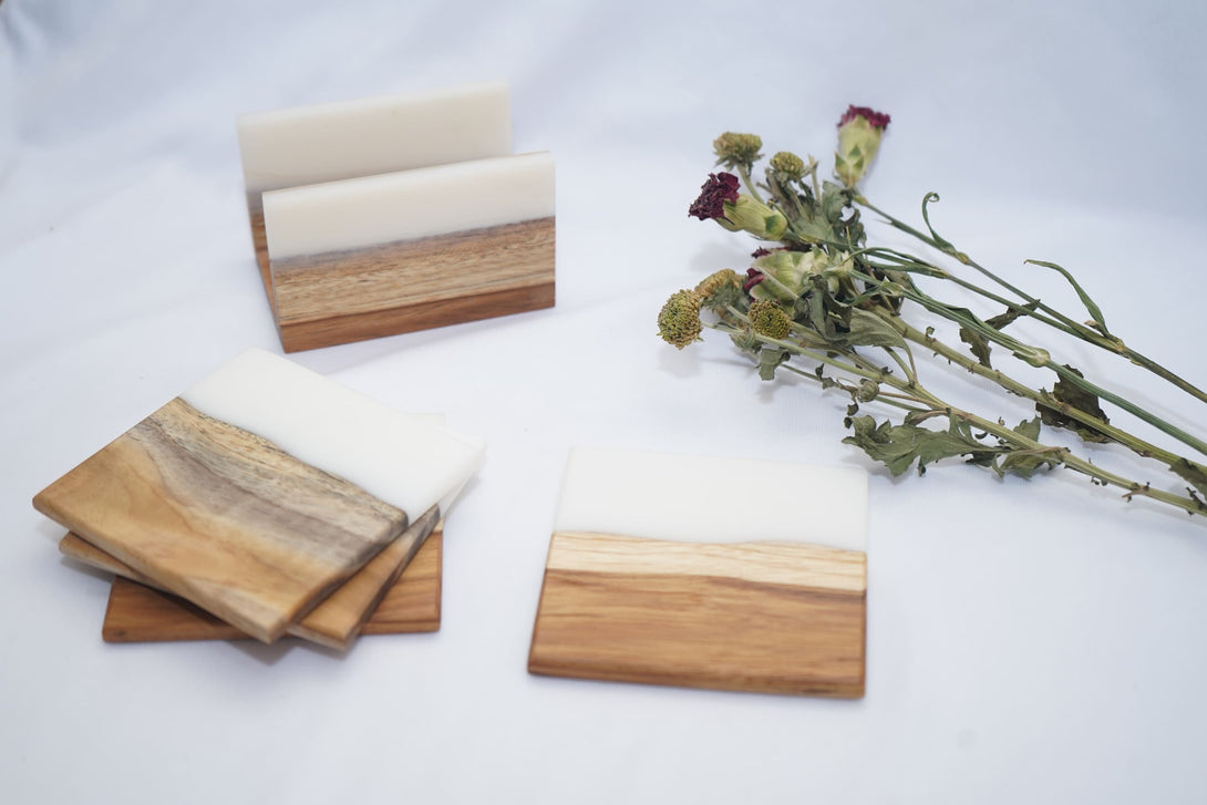 Wood and resin coasters blend natural elegance with modern flair. Crafted from sturdy wood and adorned with mesmerizing resin designs, these coasters protect your surfaces while adding a touch of sophistication to any space. The rich grains of the wood provide a warm, organic backdrop, while the translucent resin captures captivating swirls of color and depth. Each coaster is a unique work of art, making them both functional and visually striking accents for your home décor.