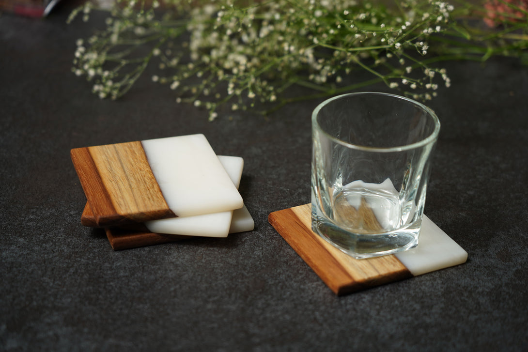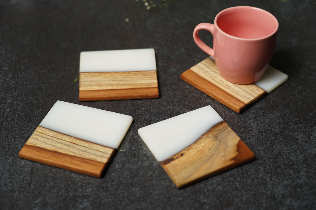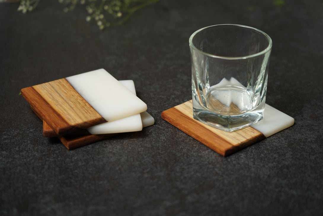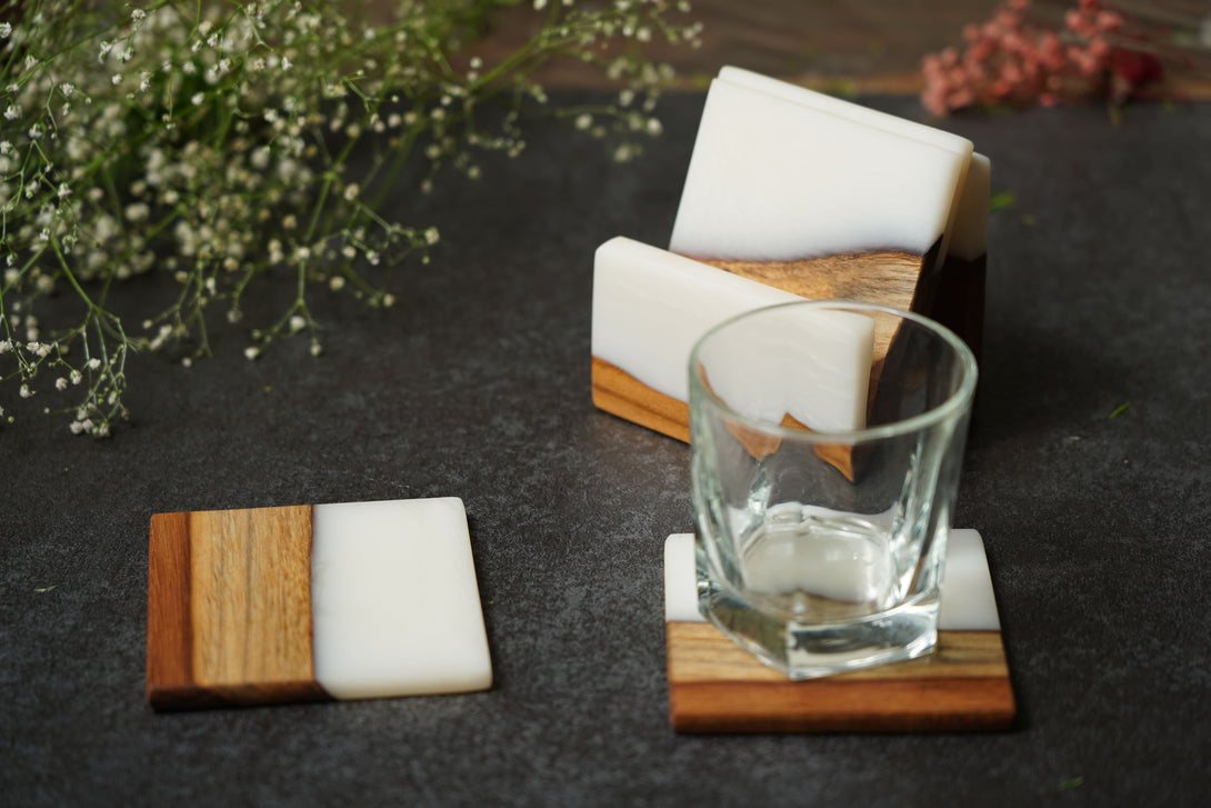 Wood and resin coasters blend natural elegance with modern flair. Crafted from sturdy wood and adorned with mesmerizing resin designs, these coasters protect your surfaces while adding a touch of sophistication to any space. The rich grains of the wood provide a warm, organic backdrop, while the translucent resin captures captivating swirls of color and depth. Each coaster is a unique work of art, making them both functional and visually striking accents for your home décor.