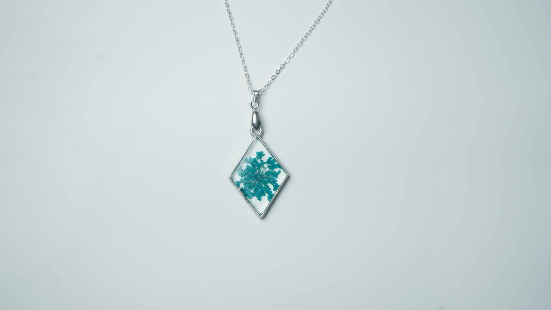 Capture the serene beauty of nature with our Light Blue Real Annes Flower Pendant, beautifully set within a modern square frame.